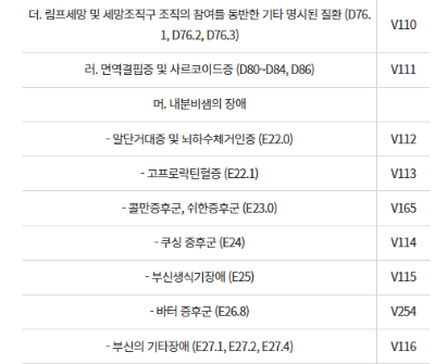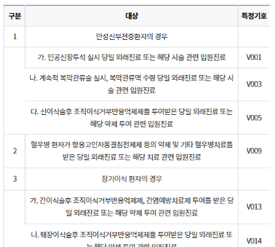 - 중증난치질환(M05, G35, K50 등 133개 질환): 류마티스관절염, 다발성경화증 등