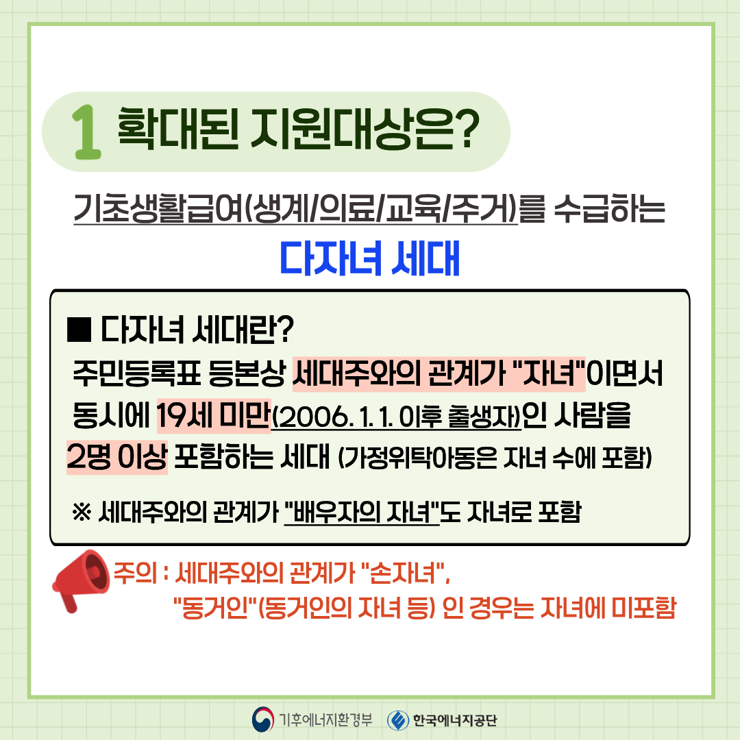 - 2025년 11월 21일부터 다자녀 기초생활수급자도 에너지바우처 신청 가능